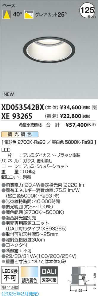 【代金引換不可】ダウンライト(XD053542BX+XE93265)