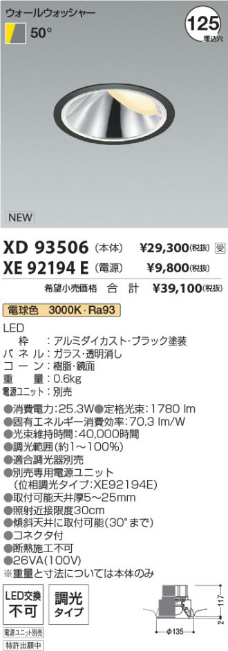 【代金引換不可】ウォールウォッシャーダウンライト(XD93506+XE92194E)