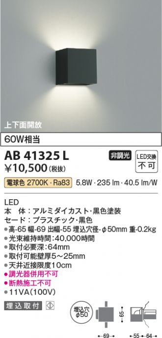 TOP > ブラケット(コイズミ照明) > AB41325L商品詳細