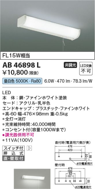 TOP > キッチンライト(コイズミ照明) > AB46898L商品詳細
