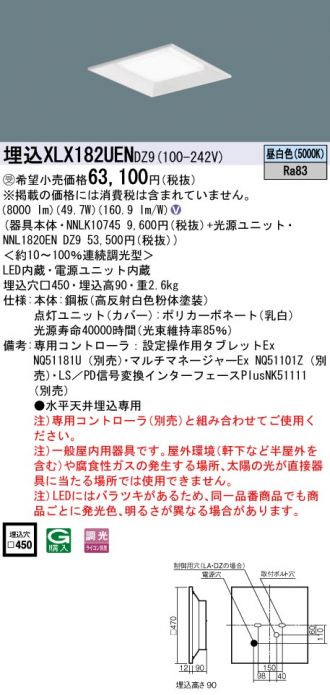 【代金引換不可】天井埋込型 一体型LEDベースライト スクエア光源タイプ(NNLK10745+NNL1820ENDZ9)