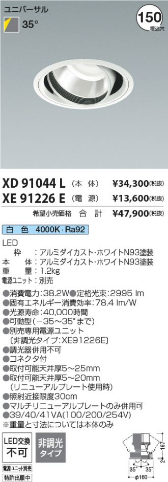 ユニバーサルダウンライト(XD91044L+XE91226E)