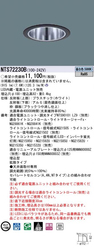 天井埋込型 LED(昼白色) ダウンライト 浅型10H・ビーム角53度・拡散タイプ・光源遮光角30度 調光タイプ(ライコン別売)/埋込穴φ100 コンパクト形蛍光灯FDL27形1灯器具相当 LED 100形