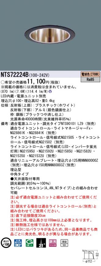 【代金引換不可】天井埋込型 LED(電球色) ダウンライト 浅型10H・ビーム角21度・中角タイプ・光源遮光角30度 調光タイプ(ライコン別売)/埋込穴φ100 コンパクト形蛍光灯FDL27形1灯器具相当 LED 100形