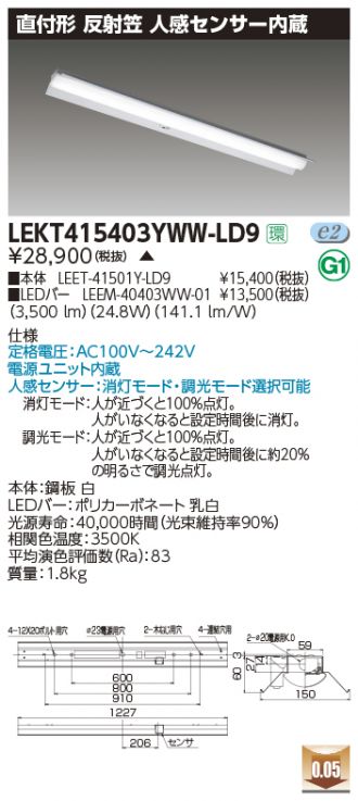 TENQOO直付40形反射笠センサ付(LEET-41501Y-LD9+LEEM-40403WW-01)