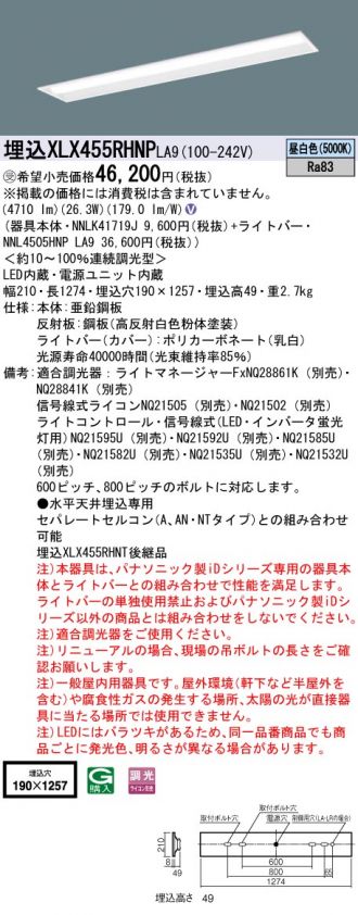【代金引換不可】天井埋込型 40形 一体型LEDベースライト 連続調光型・調光タイプ(ライコン別売) コンフォート/下面開放型 Hf蛍光灯32形定格出力型2灯器具相当/Hf蛍光灯63形定格出力型1灯器具相当 Hf32形定格出力型/Hf63形定格出力型・5200 lm(iDシリーズ)(NNLK41719J+NNL4505HNPLA9)