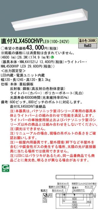 天井直付型 40形 一体型LEDベースライト コーナーライト Hf蛍光灯32形定格出力型2灯器具相当/Hf蛍光灯63形定格出力型1灯器具相当 Hf32形定格出力型/Hf63形定格出力型・5200 lm(iDシリーズ)(NNLK41521J+NNL4500HVPLE9)