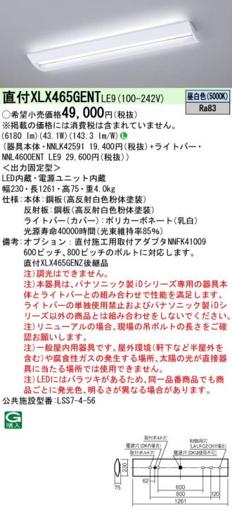 学校用 天井直付型 40形 一体型LEDベースライト スクールコンフォート Hf蛍光灯32形高出力型2灯器具相当 Hf32形高出力型・6900 lm(NNLK42591+NNL4600ENTLE9)
