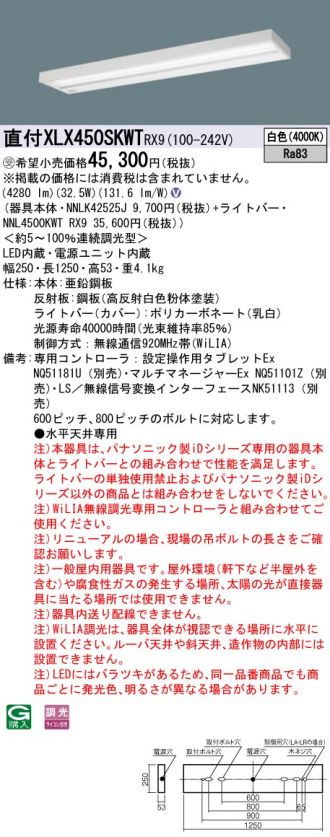 【代金引換不可】天井直付型 40形 一体型LEDベースライト 連続調光型・調光タイプ(ライコン別売) スリムベース/マルチコンフォート Hf蛍光灯32形定格出力型2灯器具相当/Hf蛍光灯63形定格出力型1灯器具相当 Hf32形定格出力型/Hf63形定格出力型・5200 lm(NNLK42525J+NNL4500KWTRX9)