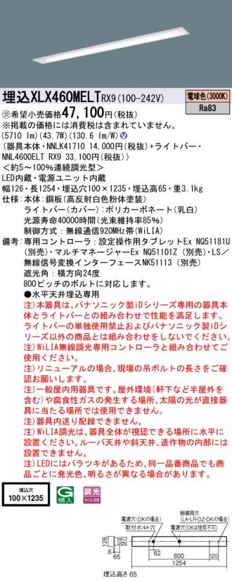 【代金引換不可】天井埋込型 40形 一体型LEDベースライト 連続調光型・調光タイプ(ライコン別売) コンフォート/下面開放型 Hf蛍光灯32形高出力型2灯器具相当 Hf32形高出力型・6900 lm(NNLK41710+NNL4600ELTRX9)