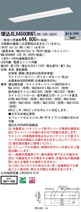 天井埋込型 40形 一体型LEDベースライト 連続調光型・調光タイプ(ライコン別売) マルチコンフォート/下面開放型 Hf蛍光灯32形定格出力型2灯器具相当/Hf蛍光灯63形定格出力型1灯器具相当 Hf32形定格出力型/Hf63形定格出力型・5200 lm(NNLK42722J+NNL4500KNTLR9)