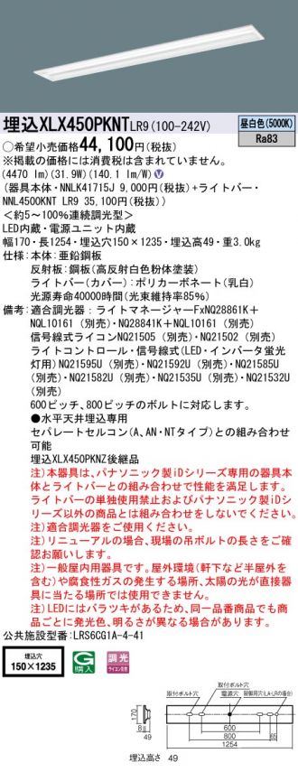 天井埋込型 40形 一体型LEDベースライト 連続調光型・調光タイプ(ライコン別売) マルチコンフォート/下面開放型 Hf蛍光灯32形定格出力型2灯器具相当/Hf蛍光灯63形定格出力型1灯器具相当 Hf32形定格出力型/Hf63形定格出力型・5200 lm(NNLK41715J+NNL4500KNTLR9)
