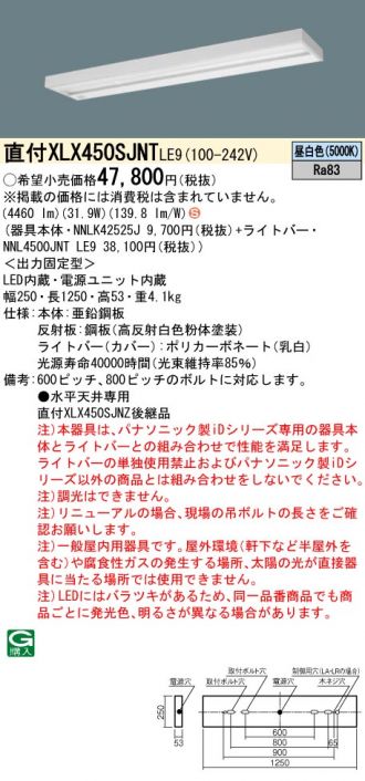 天井直付型 40形 一体型LEDベースライト スリムベース/スペースコンフォート Hf蛍光灯32形定格出力型2灯器具相当/Hf蛍光灯63形定格出力型1灯器具相当 Hf32形定格出力型/Hf63形定格出力型・5200 lm(NNLK42525J+NNL4500JNTLE9)