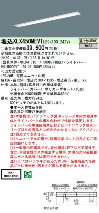 天井埋込型 40形 一体型LEDベースライト コンフォート/下面開放型 Hf蛍光灯32形定格出力型2灯器具相当/Hf蛍光灯63形定格出力型1灯器具相当 Hf32形定格出力型/Hf63形定格出力型・5200 lm(NNLK41710+NNL4500EVTLE9)