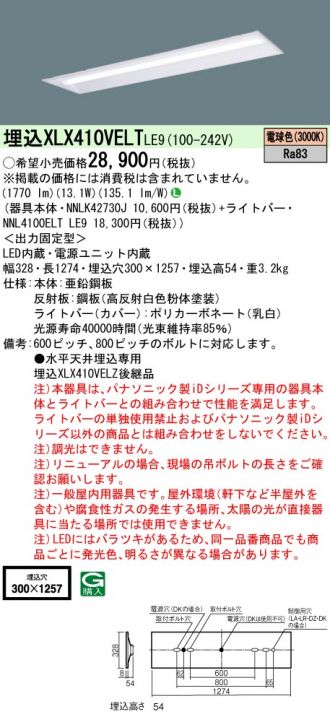 天井埋込型 40形 一体型LEDベースライト 下面開放型 直管形蛍光灯FLR40形1灯器具相当 FLR40形・2000 lm(節電)(NNLK42730J+NNL4100ELTLE9)