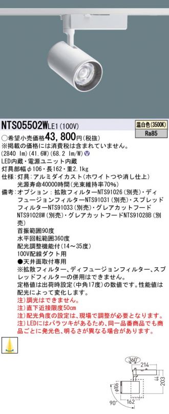 配線ダクト取付型 LED(温白色) スポットライト HID70形1灯器具相当 LED 550形