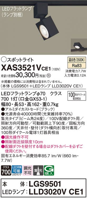 配線ダクト取付型 LED(温白色) スポットライト アルミダイカストセードタイプ・ビーム角24度・集光タイプ 110Vダイクール電球100形1灯器具相当(LGS9501+LLD3020VCE1)
