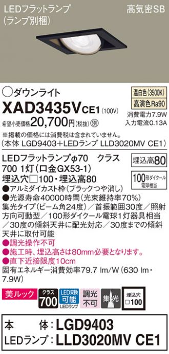 天井埋込型 LED(温白色) ユニバーサルダウンライト 美ルック・浅型8H・高気密SB形・ビーム角24度・集光タイプ 埋込穴□100 110Vダイクール電球100形1灯器具相当(LGD9403+LLD3020MVCE1)