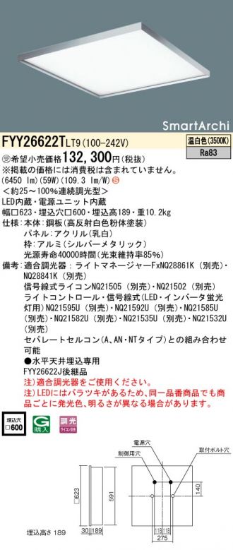 【代金引換不可】天井埋込型 LED(温白色) ベースライト 乳白パネル 連続調光型調光タイプ(ライコン別売) SmartArchi(スマートアーキ) スクエアタイプ/パネル付型