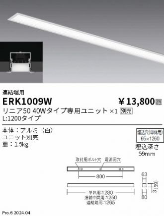 デザインベースライト L:1200 スリット埋込タイプ 連結端用