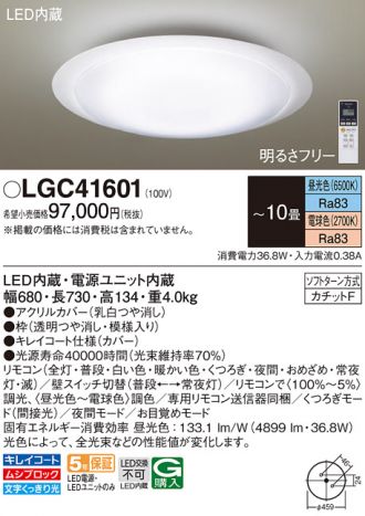 天井直付型 LED(昼光色~電球色) シーリングライト リモコン調光・リモコン調色・カチットF ~10畳