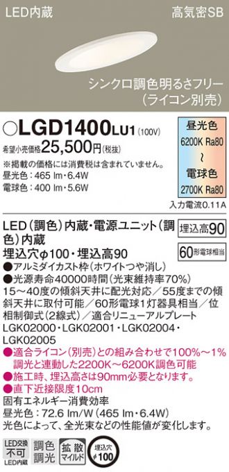 【適合ライトコントロール】リビングライコンNQ28770H (別売)