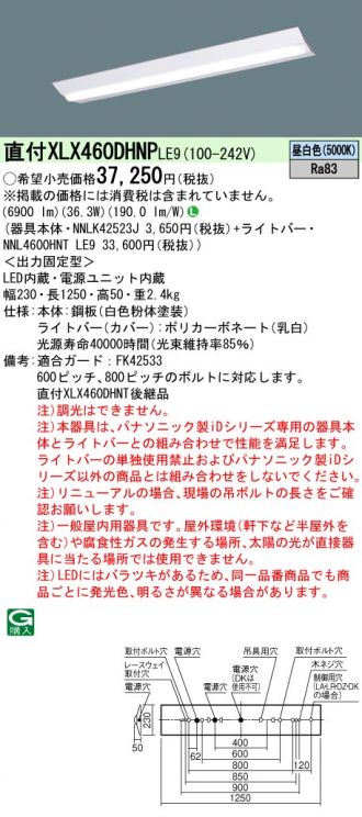 天井直付型 40形 一体型LEDベースライト(iDシリーズ) Dスタイル/富士型 Hf蛍光灯32形高出力型2灯器具相当 Hf32形高出力型・6900 lm(NNLK42523J+NNL4600HNTLE9)