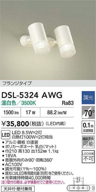 TOP > スポットライト(大光電機) > DSL-5324AWG商品詳細