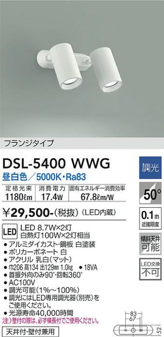 TOP > スポットライト(大光電機) > DSL-5400WWG商品詳細