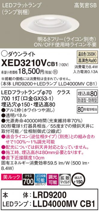 天井埋込型 LED(温白色) 軒下用ダウンライト・ポーチライト 美ルック・浅型8H・高気密SB形・拡散タイプ(マイルド配光) 防湿型・防雨型・調光タイプ(ライコン別売)/埋込穴φ150 パネル付型 白熱電球80形1灯器具相当(LRD9200+LLD4000MVCB1)