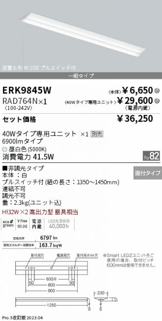 ベースライト 40Wタイプ 逆富士形 W:230 プルスイッチ付(ERK9845W+RAD764N)
