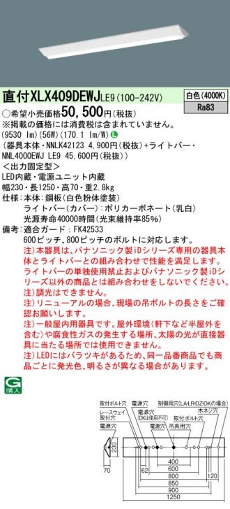 リニューアル用 天井直付型 40形 一体型LEDベースライト Dスタイル/富士型 Hf蛍光灯32形高出力型3灯器具相当/Hf蛍光灯63形定格出力型2灯器具相当 Hf蛍光灯32形高出力型/Hf蛍光灯63形定格出力型・10000 lm(NNLK42123+NNL4000EWJLE9)