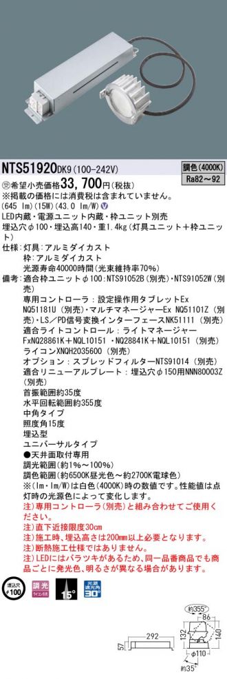 【代金引換不可】天井埋込型 LED(調色) ユニバーサルダウンライト ビーム角15度・中角タイプ・光源遮光角30度 調光タイプ(ライコン別売)/埋込穴φ100 TOLSO(トルソー) LED 150形