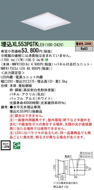 【代金引換不可】天井埋込型 LED(電球色) 一体型LEDベースライト 乳白パネル 深枠(白)タイプ スクエアタイプ/パネル付型 コンパクト形蛍光灯FHP23形3灯器具相当 FHP23形(NNFK15014J+NNFK17323JLE9)