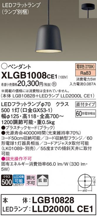 吊下型 LED(電球色) ペンダント プラスチックセードタイプ・拡散タイプ・直付タイプ 白熱電球60形1灯器具相当(LGB10828+LLD2000LCE1)