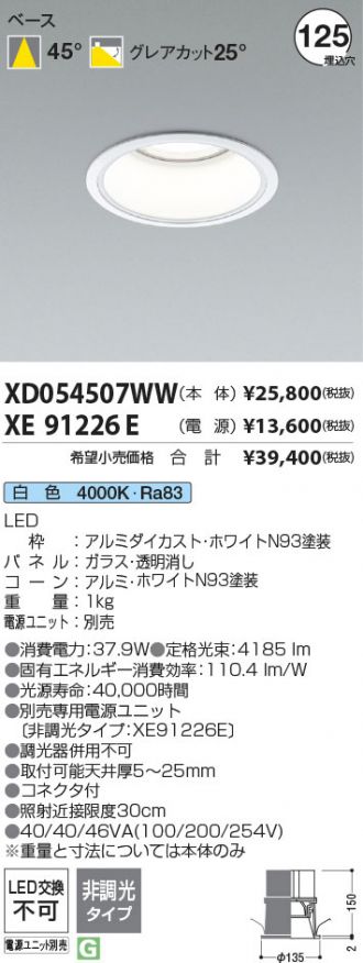ダウンライト(XD054507WW+XE91226E)