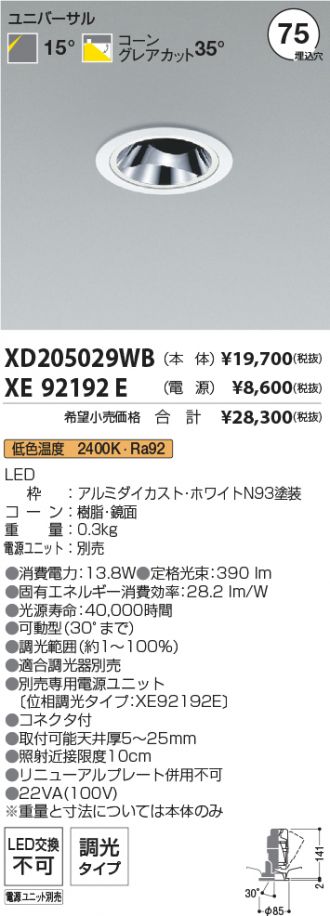 ユニバーサルダウンライト(XD205029WB+XE92192E)