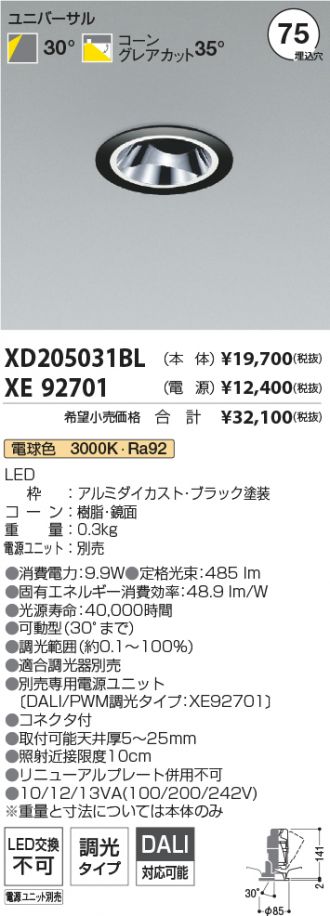 ユニバーサルダウンライト(XD205031BL+XE92701)