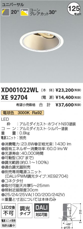 ユニバーサルダウンライト(XD001022WL+XE92704)