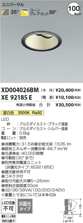 ユニバーサルダウンライト(XD004026BM+XE92185E)