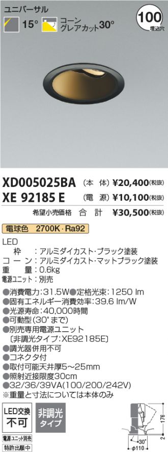 ユニバーサルダウンライト(XD005025BA+XE92185E)