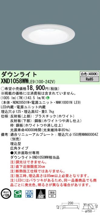 ダウンライト (白色) (NDN28501W+NNK10001NLE9)