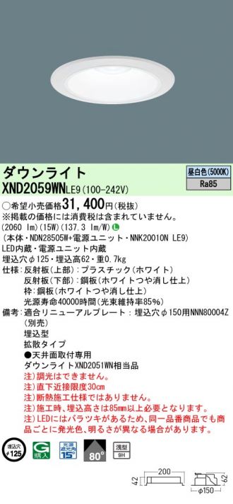 ダウンライト (昼白色) (NDN28505W+NNK20010NLE9)