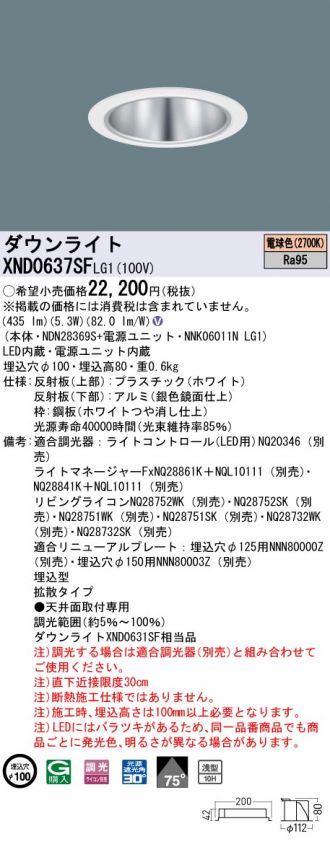 天井埋込型 LED(電球色) ダウンライト 高演色タイプ・浅型10H・ビーム角75度・拡散タイプ・光源遮光角30度 調光タイプ(ライコン別売)/埋込穴φ100 白熱電球60形1灯器具相当 LED 60形(NDN28369S+NNK06011NLG1)