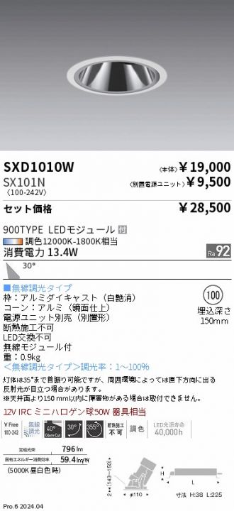 グレアレスユニバーサルダウンライト Φ100(SXD1010W+SX101N)