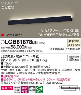 天井直付型・壁直付型 LED(温白色) ラインブラケット 美ルック・拡散タイプ 調光タイプ(ライコン別売)/L1200タイプ HomeArchi(ホームアーキ) ブラケットタイプ 直管形蛍光灯FLR40形1灯器具相当