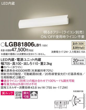 壁直付型 LED(温白色) ユニバーサルブラケット 美ルック・拡散タイプ・照射方向可動型 調光タイプ(ライコン別売) 直管形蛍光灯FL20形1灯器具相当