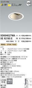 天井埋込型 LED(白色) ダウンライト ビーム角80度・拡散タイプ・光源遮光角15度 調光タイプ(ライコン別売)/埋込穴φ200 セラメタ150形1灯器具相当 LED 1000形(NDN98806S+NNK90002NRY9)