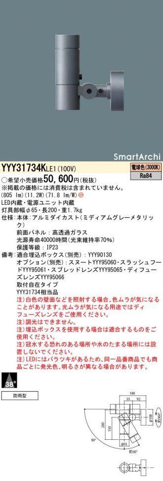 天井直付型・壁直付型・据置取付型 LED(電球色) スポットライト ビーム角38度・取付自在タイプ 防雨型 SmartArchi(スマートアーキ) シリンダータイプ/パネル付型