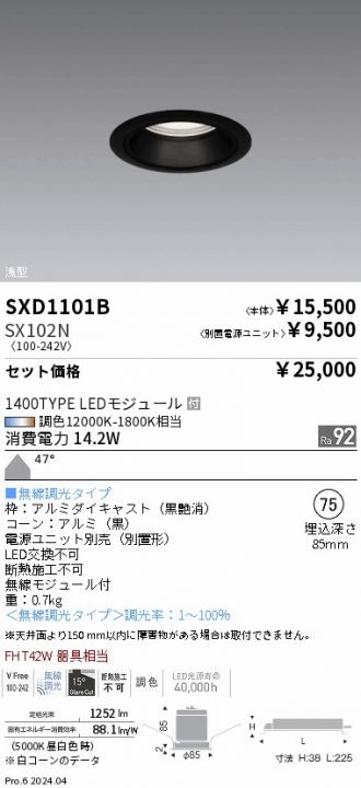 ベースダウンライト Φ75(SXD1101B+SX102N)